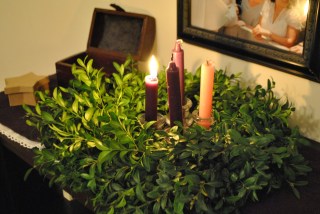 I enjoy taking the kids to a local farm store to pick out our Advent wreath. As soon as you get out of the car you can smell the Christmas trees on the other side of the lot. Happiness. I loved the look of this wreath, and so did my daughter, but I do miss that evergreen smell…I guess I’ll have to get a scented candle!