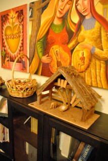 The creche, another family tradition and staple in our home growing up. Since it isn’t Jesus’s birthday yet, he’s not there. But each night we add another figure so that as we get closer to Christmas the people and animals that surround him during that time start to gather in and around the stable. This is day one. That sheep looks hungry. I’ll post another picture soon of as the crowd starts to gather. Only trouble is, I think we’re going to run out of figures in a week. And K doesn’t forget a thing.