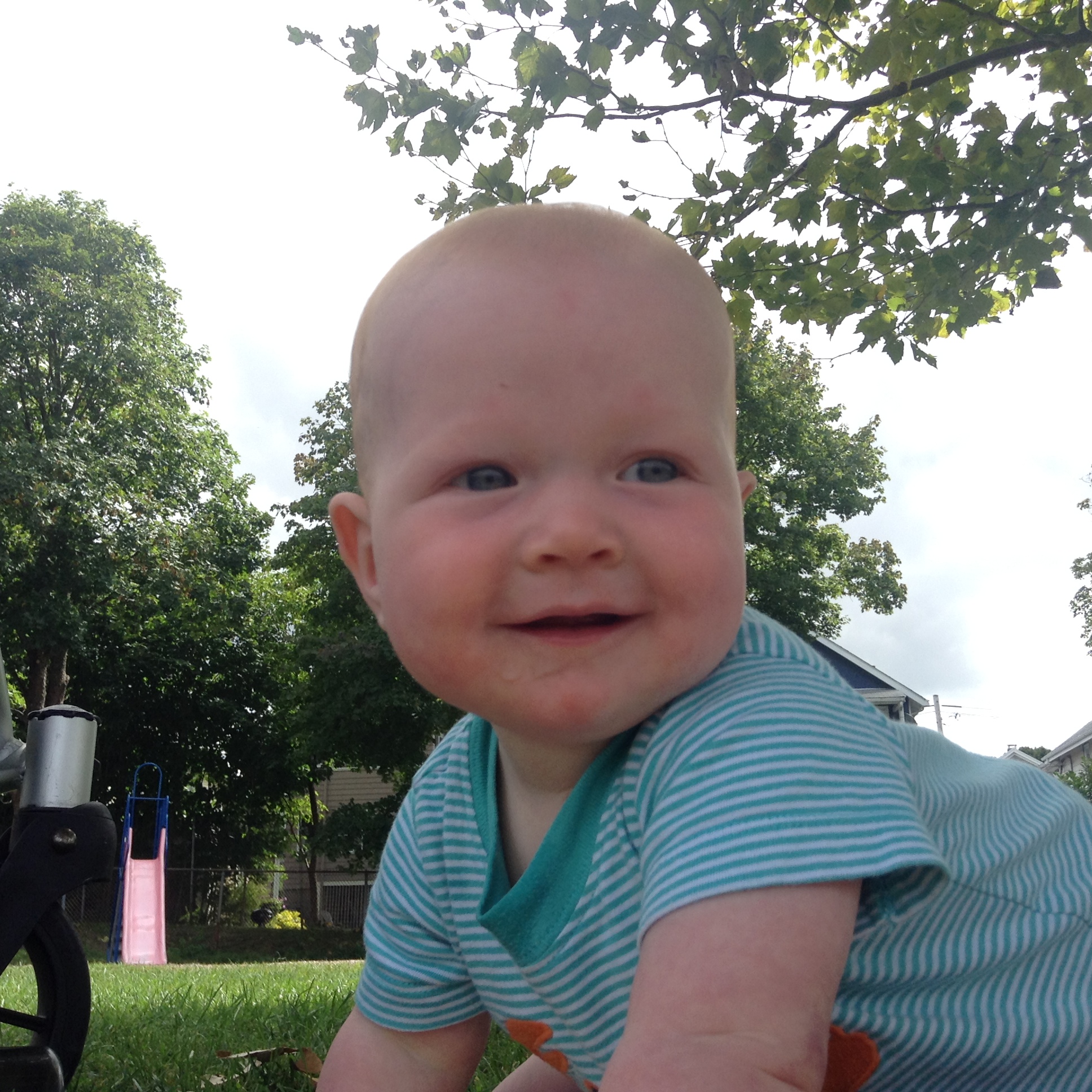 Little Bear is also enjoying the great outdoors and his new found ability to ooch around caterpillar style.