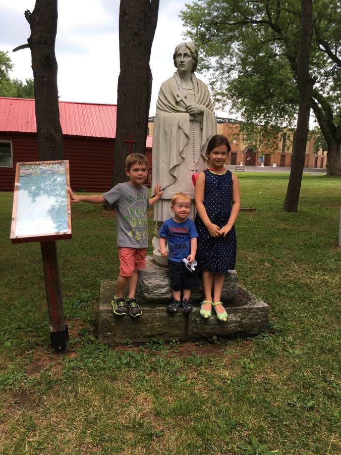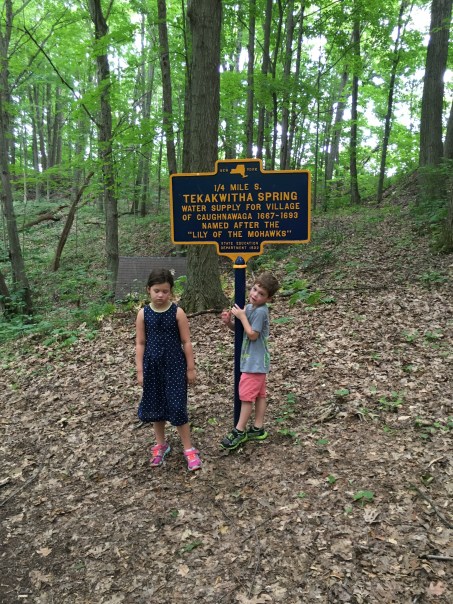 For this celebration, in an effort to keep things simple, we loaded up the family and flew 2000 miles across the country just to visit the birthplace and baptism site of St. Kateri! Go big, or go home, right? No, we happened to be a 45 minute drive from those sites while on a visit to my parents. And I thought, why not!