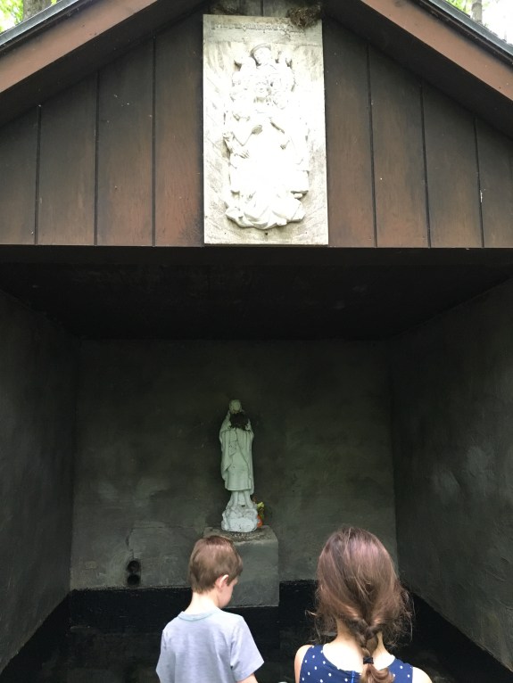 First, a visit to the Shrine of the North American Martyrs in Auriesville, NY. On the drive over I read aloud from the Loyola Press Saints Stories and we talked about what we knew about St. Kateri’s life. The Shrine of the North American Martyrs is located at the site of the village of the Mohawk tribe St. Kateri would have been born into. The shrine is also the site of the martyrdom of St. Isaac Jogues and his companions.