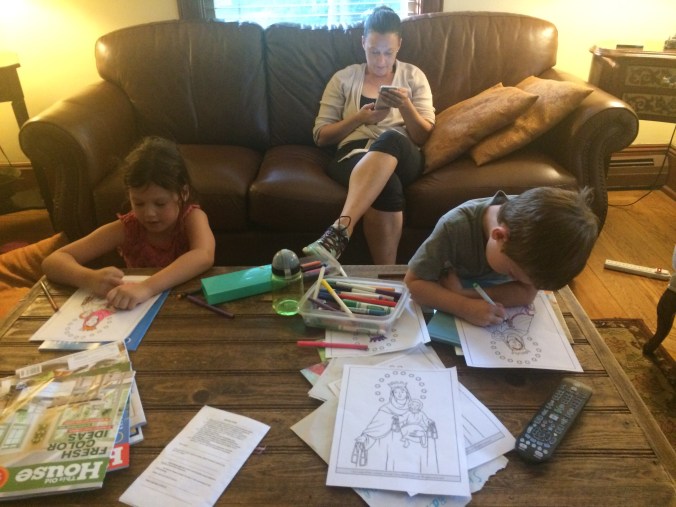 The children began coloring the pages and asked who Our Lady of Mt. Carmel was. I began to explain and then read the story I posted about Carmel and the Carmelites. JStar has picked St. John of the Cross as his namesake and was delighted to hear he was a Carmelite.